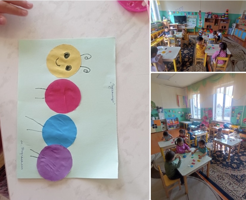 рубрики Занятие по аппликации во второй младшей группе.Тема:Гусеница Цель: развитие умений составлять изображение предмета из нескольких одинаковых форм (кругов). 17.05.2023 /
